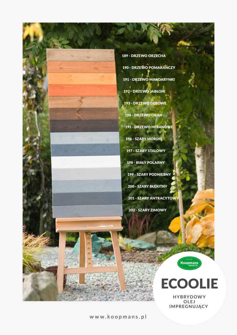 Hybridní verze impregnačního oleje vznikla kombinací olejů a vybraných vodou ředitelných alkydových pryskyřic. Produkt je snadno aplikovatelný, rychleschnoucí a má příjemnou vůni, která zajišťuje komfort při použití. Skvěle impregnující a chrání dřevo před negativními vlivy vnějších povětrnostních podmínek, reguluje jeho vlhkost a vytvořený nátěr umožňuje dřevu volně dýchat. Bezbarvá verze je navíc posílena aktivními UV absorbéry, které účinně chrání dřevo před slunečním zářením. Obsah lněného oleje zajišťuje hladký, sametový a příjemný povrch, který podtrhuje přirozenou strukturu dřeva. Při renovaci dřevo nevyžaduje předchozí broušení ani odstraňování staré vrstvy. Produkt je šetrný k životnímu prostředí (z řady BIO, založený na obnovitelných surovinách) a bezpečný pro děti (atestovaný podle normy PN-EN 71-3 „Bezpečnost hraček část 3“). Ideálně se spojuje s laky, a to jak alkydovými, tak akrylovými, z řady Koopmans. Určený pro terasová prkna, zahradní architekturu, fasádní desky nebo dětská hřiště.