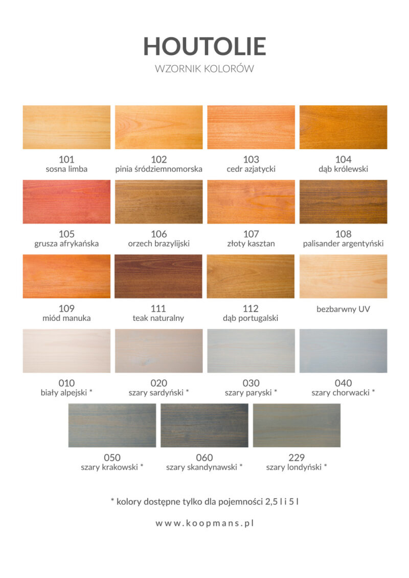 Extrémně snadno aplikovatelný impregnační a kolorující prostředek na ochranu dřeva na bázi přírodního lněného oleje. Výrobek dokonale impregnuje a chrání dřevo před negativními vlivy vnějších povětrnostních podmínek, reguluje jeho vlhkost a vytvořený povlak umožňuje dřevu volně dýchat. Díky obsahu lněného oleje získáváme hladký, hedvábný a na dotek příjemný povrch, který zdůrazňuje přirozenou strukturu dřeva. Při renovaci není nutné dřevo předem brousit ani odstraňovat starou vrstvu. Výrobek je kompatibilní s alkydovými laky z řady Koopmans. Ideální pro terasová prkna a zahradní architekturu vyrobenou jak z tvrdého, tak měkkého dřeva, stejně jako pro zahradní nábytek z exotického dřeva.