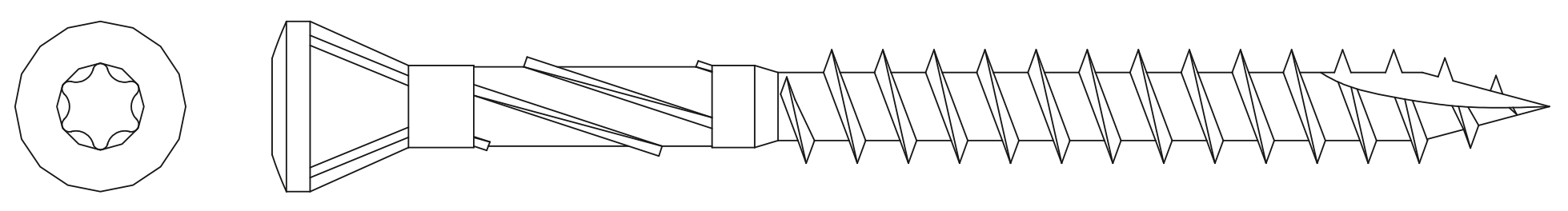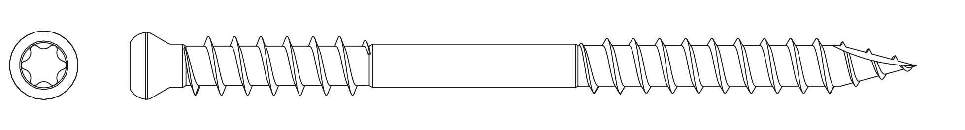 Wkręt Terrassenshraube ze stali nierdzewnej to element mocujący do tarasów, w szczególności z drewna twardego. Wkręt posiada specjalną geometrię końcówki z nacięciem gwintu, frez na gwincie oraz dekoracyjną główkę.